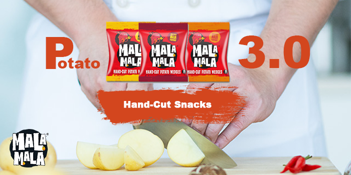 When it comes to the ingredient, Mala Mala’s only uses the most premium potatoes, each potato is hand-picked and only the best premium quality will make the cuts. To create the best texture and retain the best flavor, each of the wedges is precision hand-cut into chunks before using advance technology to air-fry it to perfect. This way, our potatoes will also reduce by 80% consumption of oil, decreases the number of fat calories and potentially harmful compounds in our snacks.